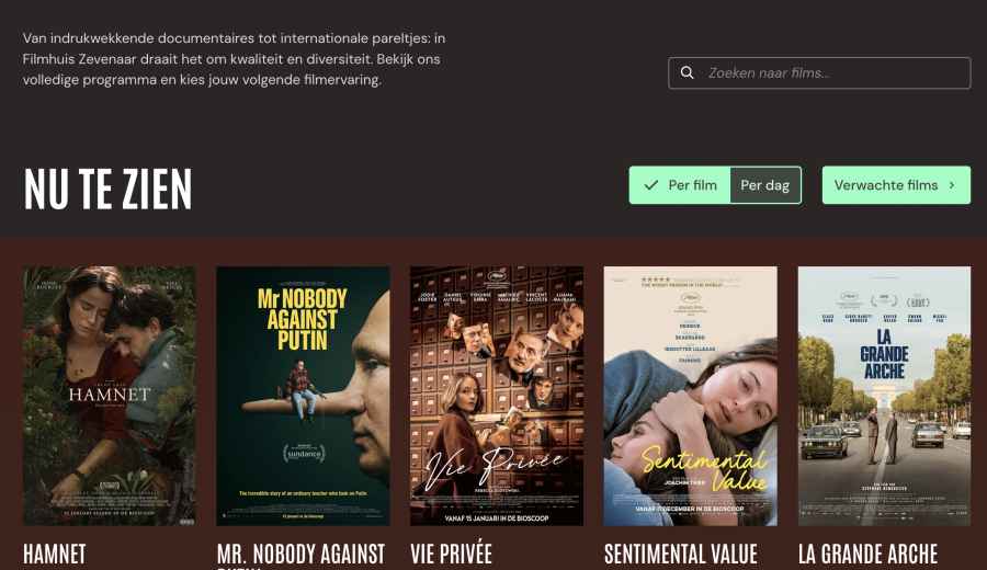 Het filmhuis programmeert dagelijks tot 9 films. In totaal zijn dat ongeveer 25 verschillende films per week, van premières en actuele titels tot bijzondere films en klassiekers. Dankzij de nieuwe website is het aanbod eenvoudiger te filteren en te plannen, of je nu spontaan een film wilt bezoeken of vooruit kijkt naar een specifieke titel.